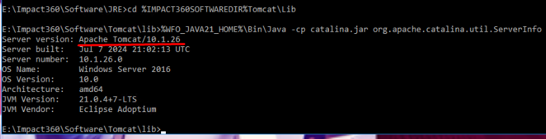 %WFO_JAVA21_HOME%\Bin\Java -cp catalina.jar org.apache.catalina.util.ServerInfo